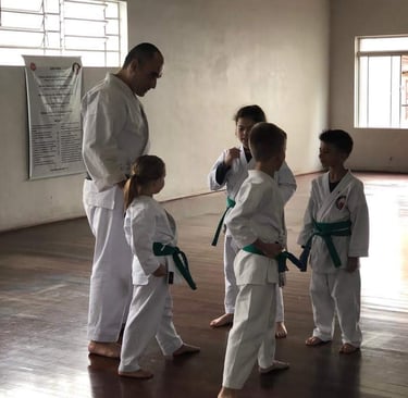 Karatê-Dô Shotokan para moldar o caráter, incutindo valores como respeito, humildade, honra e autocontrole. Mais do que formar somente atletas, meu propósito é formar indivíduos mais fortes, disciplinados e preparados para os desafios da vida. Cada movimento, cada kata e cada kihon são uma oportunidade para construir uma base sólida, tanto física quanto mentalmente.